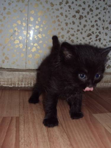 отдам котенка черный окрас,мальчик,к лотку приучен,ест сам,родился 3 сентября.89174275342