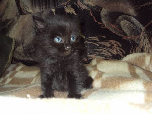 отдам котенка черный окрас,мальчик,к лотку приучен,ест сам,родился 3 сентября.89174275342