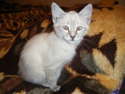 чистенькая кошечка(возраст примерно 2,5 месяца),очень похожа на сиамскую,ждет своего хозяина с добрыми руками